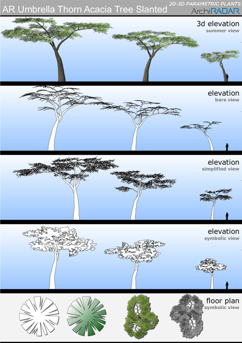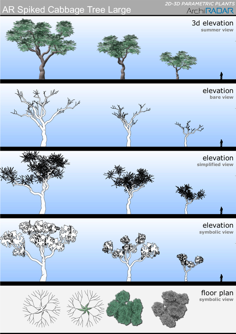 The objects are made with a low polygon quantity, they have a real growing factor according to the size and a corresponding symbolic view in elevation. Optimized for BIMX.