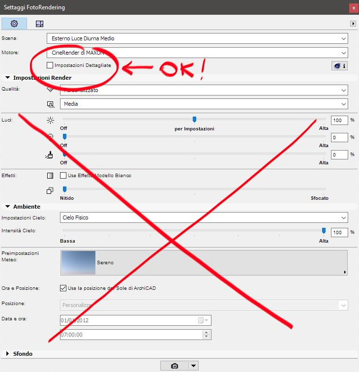 2- Abilitate la voce "Impostazioni Dettagliate". In questo modo avrete il pieno controllo su tutto quello che succederà nel render.